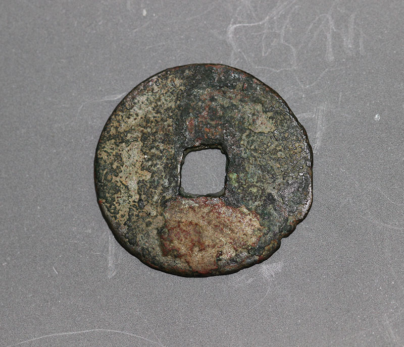 直径2.4厘米、穿边长0.7厘米、厚0.1厘米。北宋神宗赵顼熙宁年间(公元1068-公元1077)铸造,圆形方穿、正面铸文“熙宁元宝”。1992年被鉴定为一般文物。