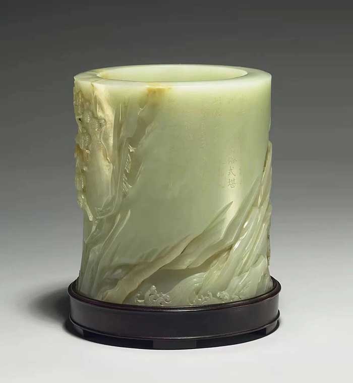 笔墨挥洒之后,洗笔润毫需得一方洁净之器,玉洗便是文房中的"君子之器"。作为专门用于清洗毛笔的文房用具,玉洗以玉石为主要材质,温润的玉质与含墨的毛笔接触时,既不会损伤笔毫,又能将墨迹洗净,让毛笔保持良好的状态。