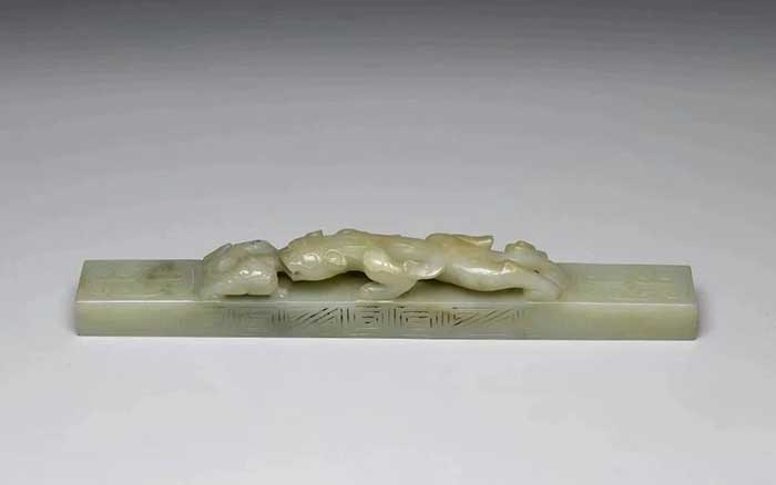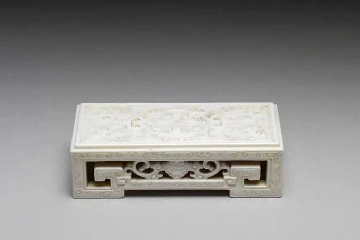 墨床具体起源尚无确切考证,宋元时期可能已出现相关器物。明代出现白玉制墨床实物,风格素朴无雕饰。至清代,墨床制作工艺显著发展,玉质墨床最为精致,分为扁薄带木座与立体仿家具造型两类,雕刻技法较明代更为细腻。