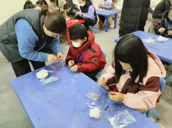 讲解结束后,大家迫不及待地投入到制作中。大家不时相互交流制作心得,遇到问题就向社教老师请教,每个人都沉浸在手工制作的乐趣中。