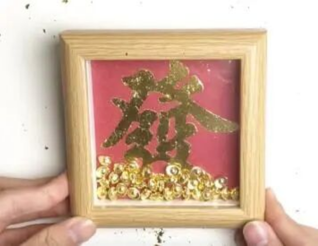 活动内容:根据提供的材料和工具,学生和家长一起制作发财金箔画相框