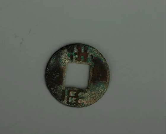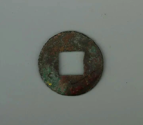 直径2.4厘米,穿边长0.7厘米。钱币质地坚实,表面氧化包浆。其保持“圆形方孔”的经典形制,方孔左右两侧镌刻“五铢”二字,与秦半两相比,此币边缘更为规整,背面呈内凹状,工艺更为成熟,直观反映了汉代铸币技术的进步与货币制度的完善。