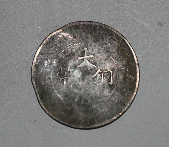 直径3.2厘米、厚0.2厘米。此币是清代晚期机制钱币的代表,铸造于光绪、宣统年间,取代了传统手工铸造的制钱。钱面中央铸有“大清铜币”四个汉字,内嵌一小字代表铸造地名(如“宁”“鄂”等);上端为满文“大清铜币”字样,彰显皇权属性;边缘中间铸有“户部”二字,表明其由中央户部统一管控;下端标注“当制钱十文”,明确其面值。钱背中央为蟠龙图案,龙纹雕刻精细,姿态威严,兼具传统龙纹文化与近代机制工艺特色,是清代货币向近代化转型的重要实物见证。