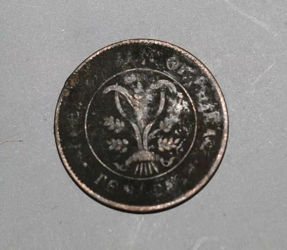 直径3.2厘米、厚0.2厘米。民国时期地方铸币的代表性藏品。钱币为红铜质地,圆形无孔,正面除铸有“中华民国”“当制钱二十文”等通用标识外,在边缘还铸有“湖南省造”字样,明确其铸造产地;背面嘉禾纹采用地方特色的雕刻风格,稻穗排列紧凑,与中央铸币略有差异。此币不仅是民国地方货币流通的实物证据,也反映了近代湖南地区的工业铸币水平与经济状况。