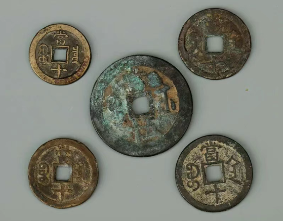 宋代钱币的另一显著特征是“年号钱”盛行,几乎每位皇帝即位后都会铸造以当年年号命名的钱币,如“崇宁重宝”“圣宋通宝”“大观通宝”“元丰通宝”“政和通宝”等,钱币种类繁多,钱文书法风格多样,涵盖隶书、楷书、行书、篆书等多种字体,许多年号钱的钱文由皇帝亲自题写(如宋徽宗题写的“瘦金体”钱文),使宋代钱币成为兼具历史价值与艺术价值的文化瑰宝。