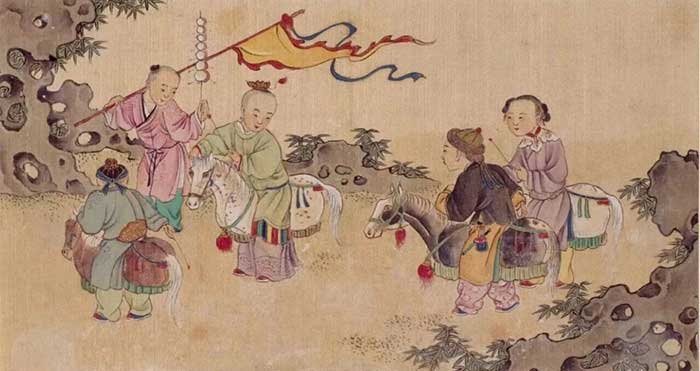 童子戏竹马图
