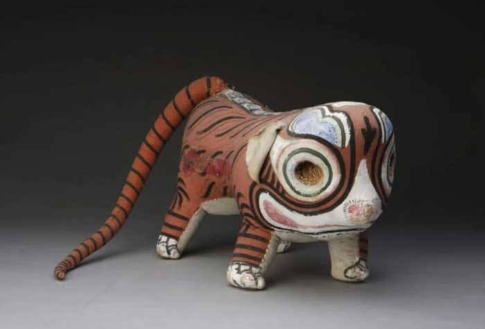 因此,人们把虎作为生命保护神和繁衍生育之神。布老虎以双头虎枕为多见,是崇虎习俗在民俗中的表现形式,其中蕴含着深厚的文化内涵。双头虎枕是一个象征阴阳相合的母体,可以祛灾,保护娃娃的平安。